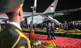 Tadžikistanas pasitiko Putiną su raudonu kilimu ir gėlėmis