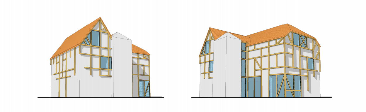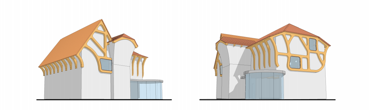 Projektuotojai UAB "Archko" pateikė du galimus pastato konversijos variantus. Pirmuoju variantu siūlomas lenktų, grakštesnių formų pastatas, antruoju variantu - griežtesnių formų.
