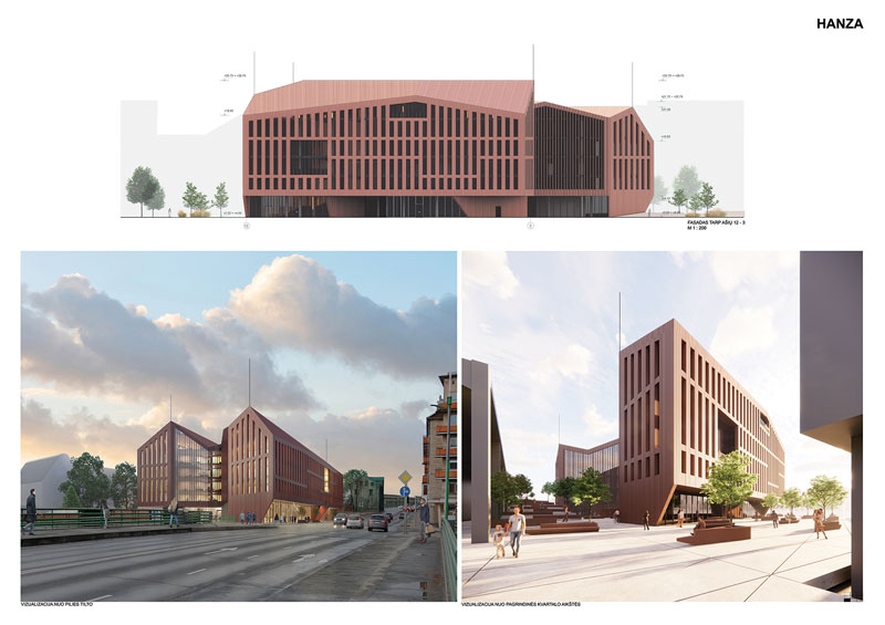 "Konkurso projekto tikslas - architektūra, kuri darniai suderina miesto plėtros, verslo ir viešojo gyvenimo interesus, kuria pridedamąją vertę ir tvarią aplinką. Projektuodami pastatą orientuojamės į vietos charakterio išsaugojimą, pagarbų santykį su kontekstu. Daug dėmesio skiriame upės ir viešųjų erdvių aktyvavymui, pastato įtraukimui į aktyvų miesto gyvenimą.