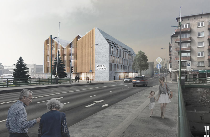 Vilnijanti vertikali fasadų grafika suteikia pastatui šiuolaikiškumo ir grakštumo, o apdailos medžiagos asocijuojasi su industrine kvartalo praeitimi", - teigiama projekto aprašyme.