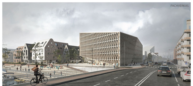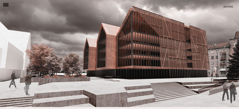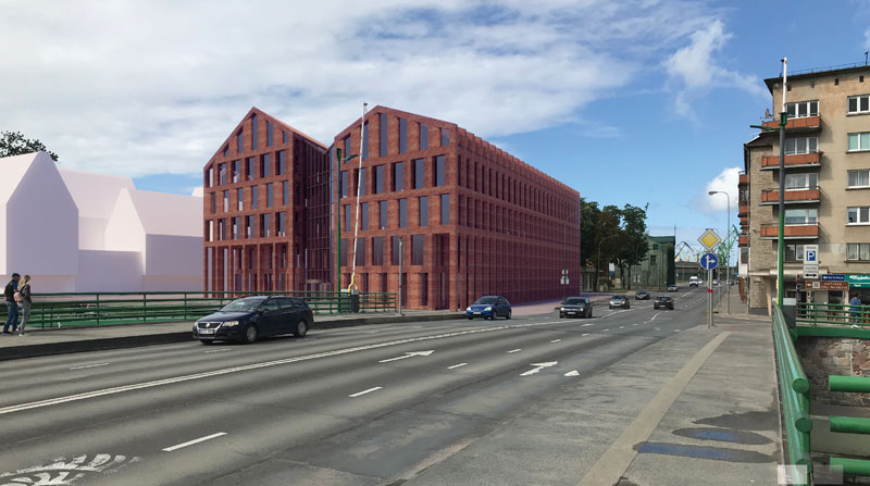 Projektuojama promenada stiprina erdvės pralaidumą ir gyvybingumą. Vertikalaus skaidymo, reaguojančio į saulės kontrolę, vario fasado tūriai įsilieja kovertuojamos industrinės teritorijos bei senamiesčio sandūroje, raudonų plytų, fachverkų konstrukcijos pastatų kontekste", - rašo projekto autoriai.