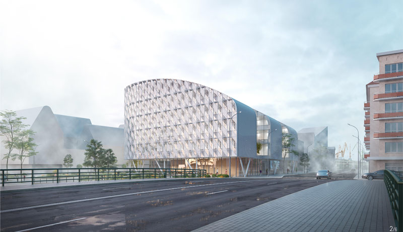Kūrybiškai interpretuojant šiuos Klaipėdos identitetą atspindinčius elementus ir derinantis prie jų tūrinės erdvinės kompozicijos sumodeliuojama nauja, išraiškinga, šiuolaikiška pastato forma", - teigia projektuotojai.