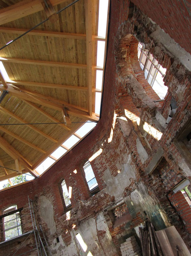 "Sovietmečiu gyventojai iš dujų saugyklos buvo iškelti, pastatas atiduotas komjaunimo organizacijai. Komjaunuoliai norėjo ten įkurti alubarį ir senąjį stogą nuardė, tačiau prieš šį veiksmą jie išmatavo stogą. Pagal tuos matavimus ir nedidelę senojo stogo detalę, kurią pavyko atrasti, atkūrėme naują stogą", - pasakojo dujų fabriko pastatais besirūpinančio visuomeninio fondo "Augustus" direktorius Arvydas Urbis.