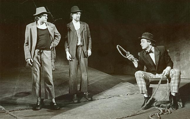 | Klaipėdos dramos teatre K. Žilinskas pastatė Samiuelio Beketo pjesę "Belaukiant Godo". Šioje nuotraukoje - pjesės veikėjai Estragonas (Kęstutis Macijauskas), Vladimiras (Vidas Jakimauskas) ir Poco (Kęstutis Žilinskas). |