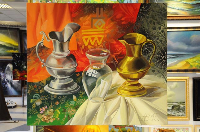 Aš juos tapiau nuo rugpjūčio pabaigos, kai tik atsilaisvinau po freskų Šv. Pranciškaus Asyžiečio bažnyčioje. Juk reikia kažką gyvenime daryti. Supratau, kad pasiilgau natiurmorto, tai jį ir dariau. Man labai patinka natiurmorto žanras, jeigu pastebėjai, man būna periodai: tai užeina noras pastelėmis piešti, tai akvareles lieti, tai abstrakčius paveikslus tapyti. Kažkoks signalas ateina. Tai būna iš anksto neplanuota.