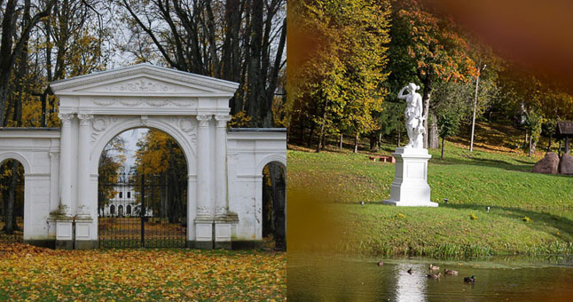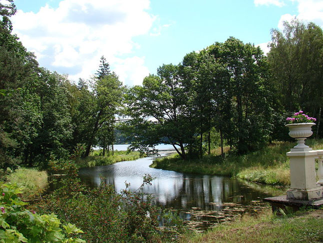 RYŠKIAUSI Lietuvos peizažinių parkų pavyzdžiai - garsaus prancūzų kraštovaizdžio architekto Eduardo Fransua Andrė (Edouard Francois Andre) suprojektuoti Palangos, Kretingos, Trakų Vokės, Lentvario ir Užutrakio parkai buvusiose grafų Tiškevičių valdose. Nuotraukoje - Užutrakio dvaras, kuris apėmė per 600 ha teritoriją. Iš jų 80 ha plotą apėmė sodyba. Jos dvi dalis - ūkinę ir reprezentacinę - skyrė tvenkinių ir želdynų sistema. Buvo iškasta per 20 skirtingų dydžių ir formų tvenkinių, kurie jungėsi su ežerais ar tarpusavyje. ("Wikipedia" nuotr.)