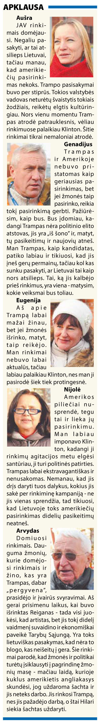 Čikagoje gyvenanti lietuvė Angela Kavak "Vakarų ekspresą" tikino, esą žiniasklaida dėjo daug pastangų į neigiamą pusę išversdama viską, ką pasakė ar padarė D. Trampas. Ji neslepia, jog rinkimuose balsavo būtent už pastarąjį kandidatą.
