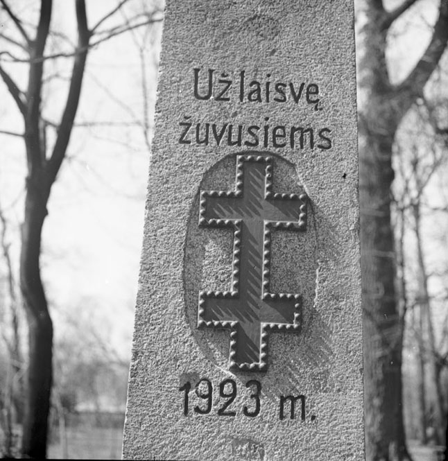 Nuotrauka atminimui prie 1923 metų sukilėlių paminklo, daryta pokariu. Vytauto TAMOŠIŪNO nuotr.