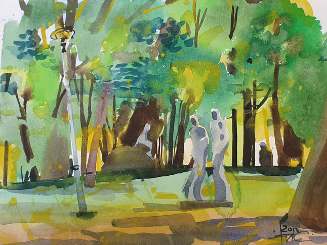 Irinos Novokreščionovos akvarelė "Skulptūrų parkas", 2013 m. MLIM archyvas