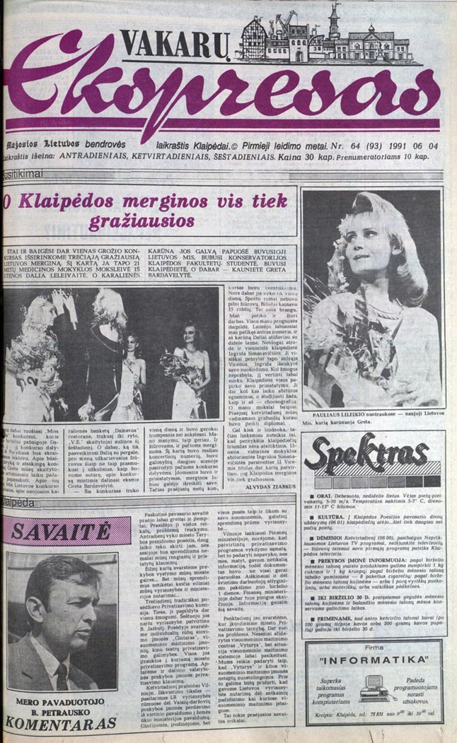 Nesvarbu, kad 1991-ųjų Lietuvos gražiausia mergina buvo išrinkta 21-erių medicinos moksleivė iš Utenos Dalia Leleivaitė. Daug svarbiau tai, kad jai karūną ant galvos uždėjo ankstesnioji "Miss Lietuva" - klaipėdietė Greta Bardavelytė, o antrąja vicemis tapo uostamiesčio 15-osios vidurinės mokyklos abiturientė Ingrida Simanavičiūtė.