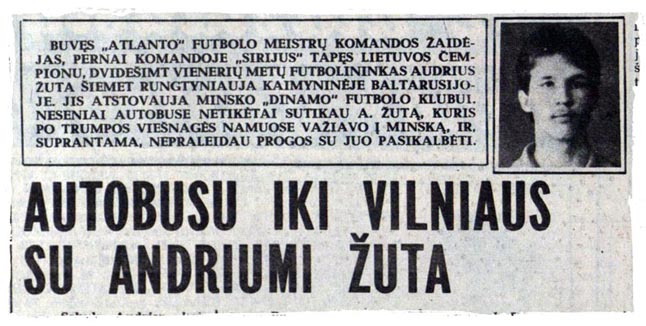 O vaikščiojanti futbolo enciklopedija Algirdas Auruškevičius buvo sužavėtas kitu Klaipėdos talentu - futbolininku Audriumi Žuta, kurį sutiko autobuse po trumpos viešnagės namuose važiuojantį į Minską. Buvęs "Atlanto" žaidėjas, praėjusį sezoną jau su Klaipėdos "Sirijumi" tapęs Lietuvos čempionu, tuo metu leido debiutinius metus pajėgiausioje Baltarusijos ekipoje - sostinės "Dinamo" klube.