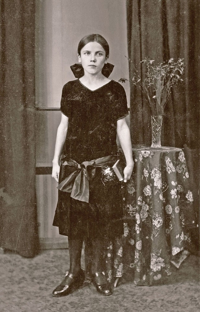 Konfirmacijos (įžegnojimo) suknelė. Dėvėjo Elzė Ingrida Marija Gelžytė, gimusi 1939 m., konfirmuota 1953 m. Priekulėje.