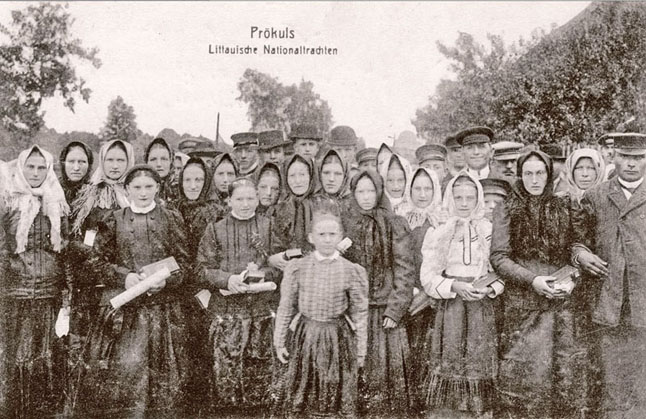 "Aš vilkėjau ilgą, juodą, namie pačios motinos išaustą sijoną, kuris buvo smulkiai suklostytas ir suprosytas, juodą su kutarais jaką, buvau pasirišusi juodą plačią atlasinę priejuostę ir apsirišusi juodą skepetą ilgais šilkiniais kutais."