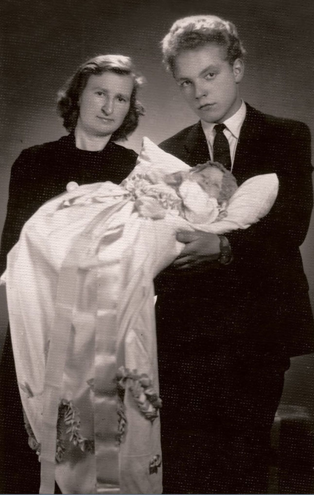 Artūro Genio krikštynos. Krikšto tėvai Helenė Genytė ir Albertas Latužis. Kisinių kaimas, 1963 m.