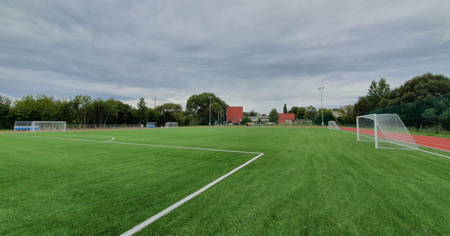 Taip pat įrengta dirbtinės žolės futbolo aikštė su gumos granulių paklotu, įrengtos 200 vietų žiūrovų tribūnos, sumontuota aikštyno apšvietimo sistema ir viso perimetro aikštyno tvora. Darbus atliko UAB "Rolana".