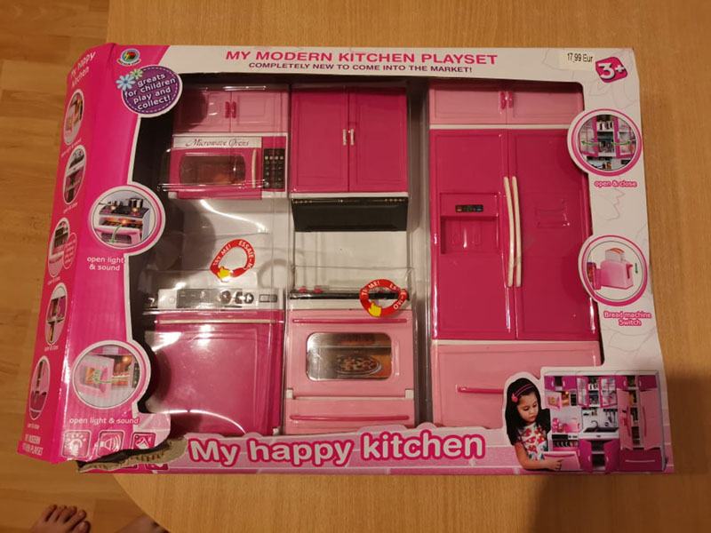 "Pirkome žaislinių virtuvinių baldų komplektą, nes dukra labai tokio norėjo. Parduotuvėje negalėjome jo išpakuoti ir apžiūrėti, nes dėžutė buvo apvilkta plėvele", - pasakojo moteris.